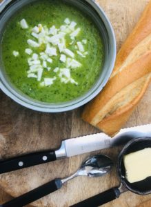 Courgettesoep met doperwten en basilicum